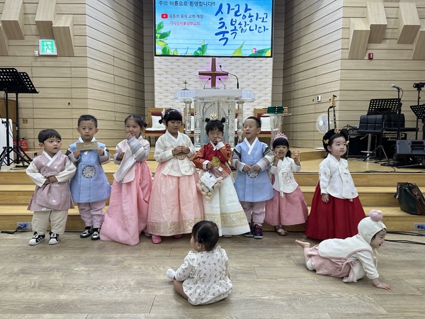 2025년 추석의 아이들 [2025.10.5] 페이지 정보 작성자 최고관리자 작성일25-10-06 16:38 조회65회 댓글0건 관련링크 다음글 목록 답변 글쓰기 본문 우리의 귀한 아이들(4가정 13명)이 추석명절을 맞이해어여쁜 한복을 입고 예배에 참석한 후사랑스러운 기념사진을 남겼습니다.평생을 하나님의 날개안에서 안전하게 하나님과 동행하는 인생 되길 기도합니다. 댓글목록 등록된 댓글이 없습니다. 다음글 목록 답변 글쓰기